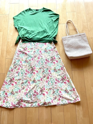 例えば今回の場合であれば似た緑をトップスに持ってきました。